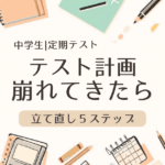 「家では勉強しているのに、定期テストの点が上がらない」「提出物もやっているのに、結果に出ない」この状態は、親として本当に不安になります。 でも、最初に言っておきます。 定期テストの点数が伸びない原因は ... - 定期テスト2週間前に確認:計画が崩れ始めたときの 立て直し5ステップ